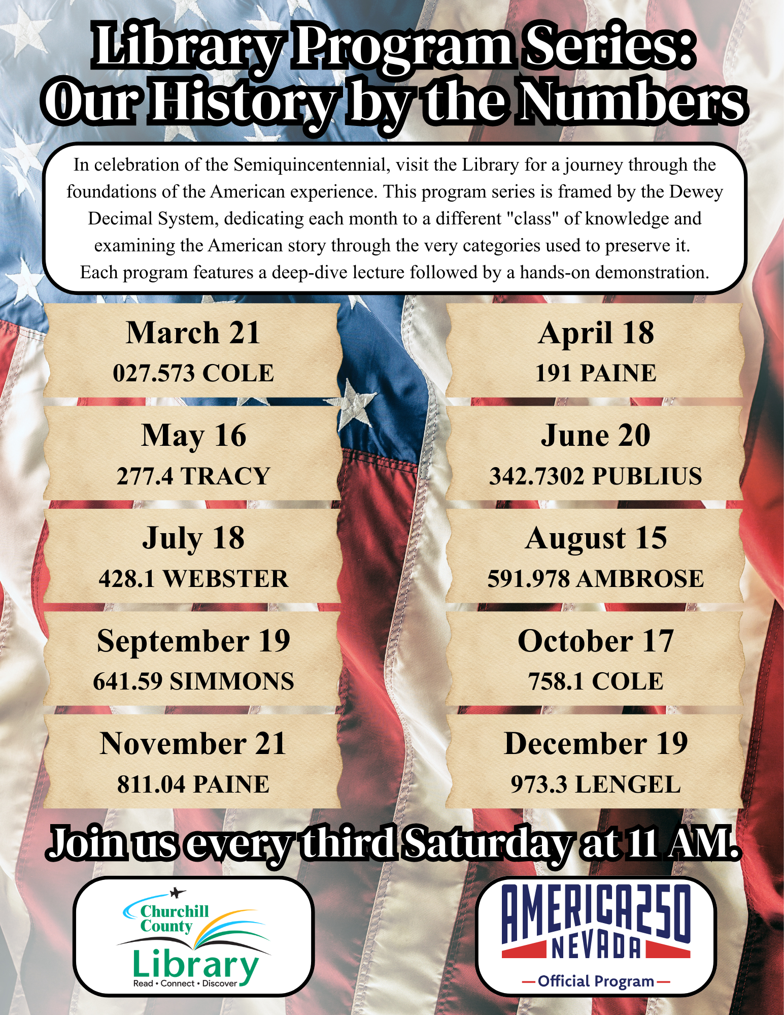All Churchill County residents are eligible for a library card free of charge. Simply visit the library with your Nevada-issued ID/driver’s license or military ID.
